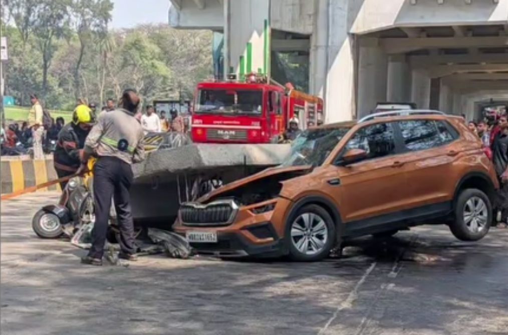 Mulund : On Saturday, February 14, 2026, at approximately 12:20 PM, a portion of a parapet segment from an under-construction metro pillar